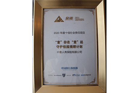 ”童“你在”意“起守護(hù)校園捐贈(zèng)計(jì)劃榮獲2020年度十佳社會(huì)責(zé)任項(xiàng)目